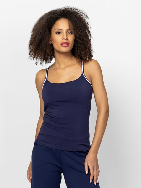 Kék színű Heavy Tools Bonita Navy női póló. Felsőrészének az anyaga: