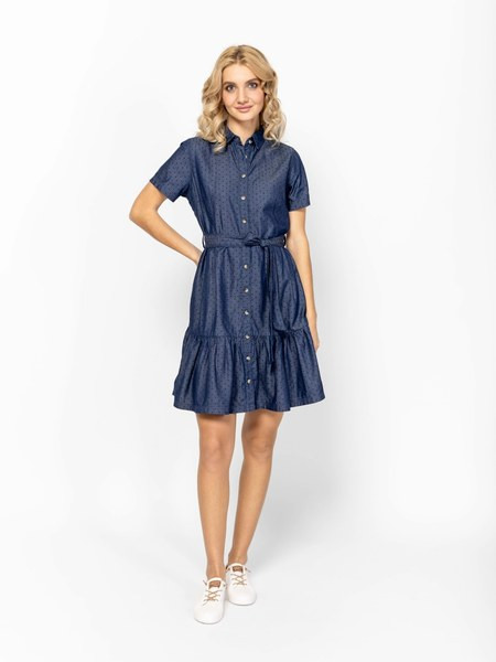Kék színű Heavy Tools Volanka Polka női ruha. Felsőrészének az anyaga: