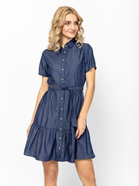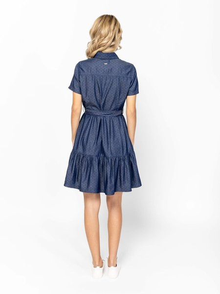Kék színű Heavy Tools Volanka Polka női ruha. Felsőrészének az anyaga: