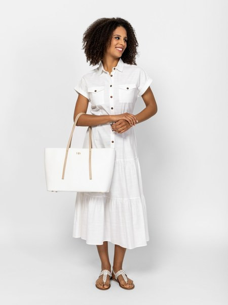 Bézs színű Heavy Tools Vunna Ecru női ruha. Felsőrészének az anyaga: