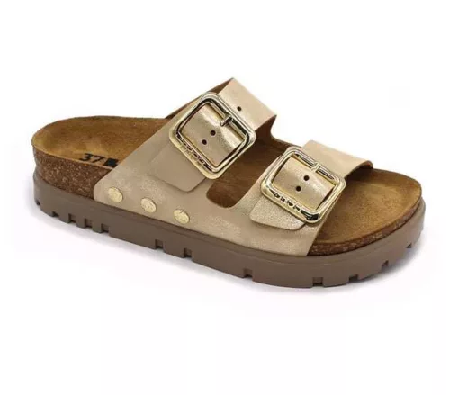 arany színű Leon Comfort 6010 arany női papucs. Felsőrészének az anyaga: Bőr felső