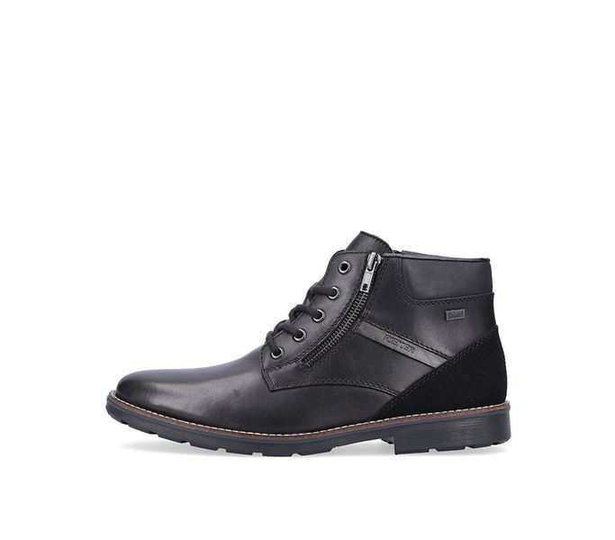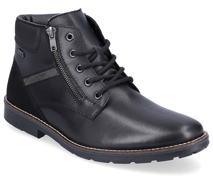 Fekete színű Rieker 15303-00 férfi bakancs. Felsőrészének az anyaga: Bőr felsőrész