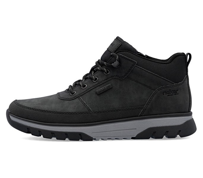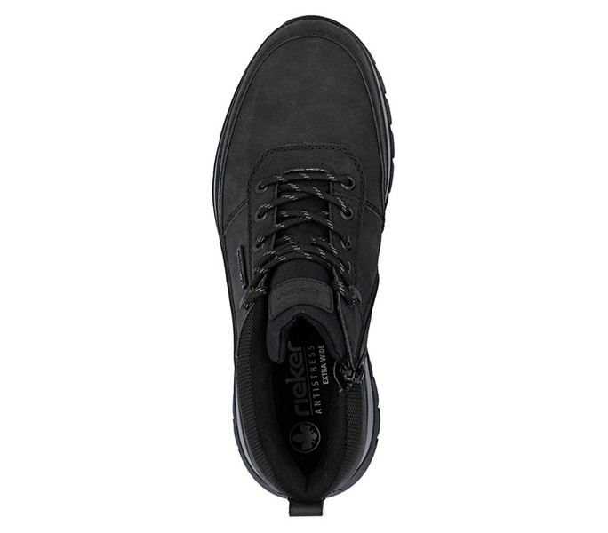 Fekete színű Rieker B9300-00 férfi bakancs. Felsőrészének az anyaga: Ekológikus bőr felső