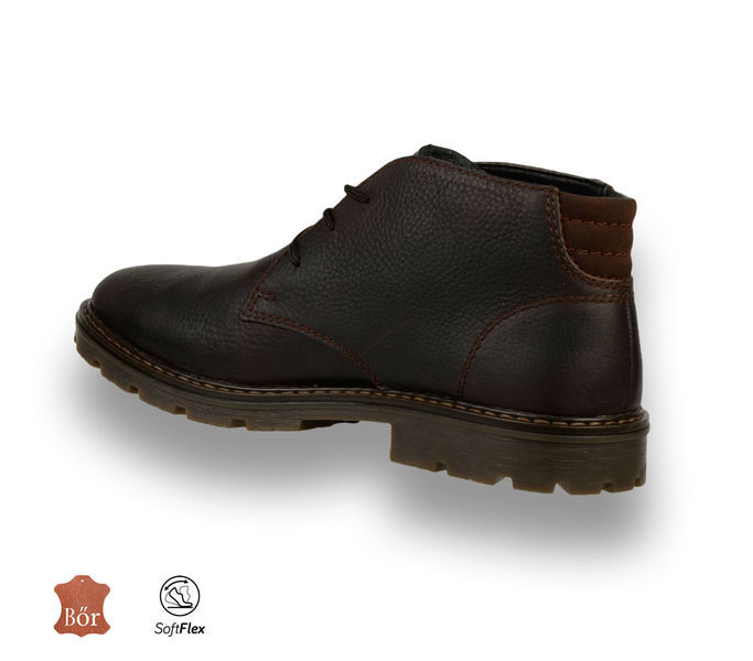 Barna színű Rieker 32104-25 férfi cipő. Felsőrészének az anyaga: Bőr felső