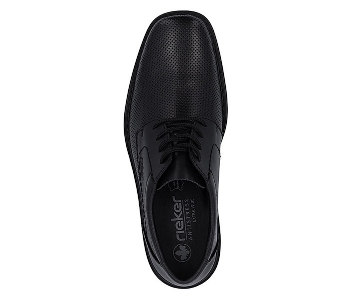 Fekete színű Rieker B0804-00 férfi cipő. Felsőrészének az anyaga: bőr felső