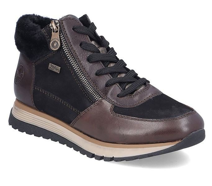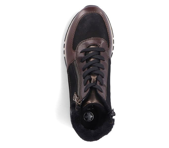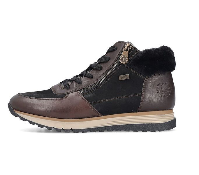 Barna színű Rieker 49040-00 női bakancs. Felsőrészének az anyaga: bőr felső
