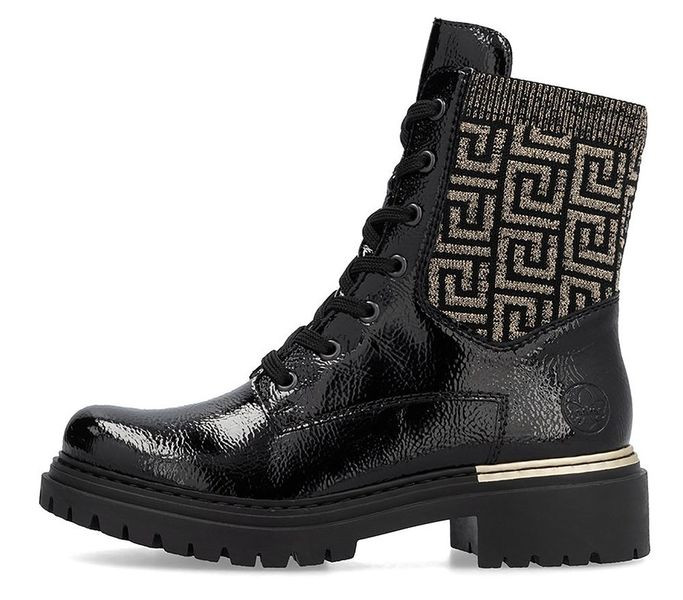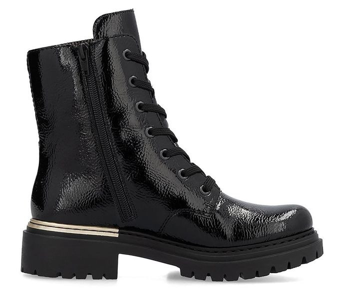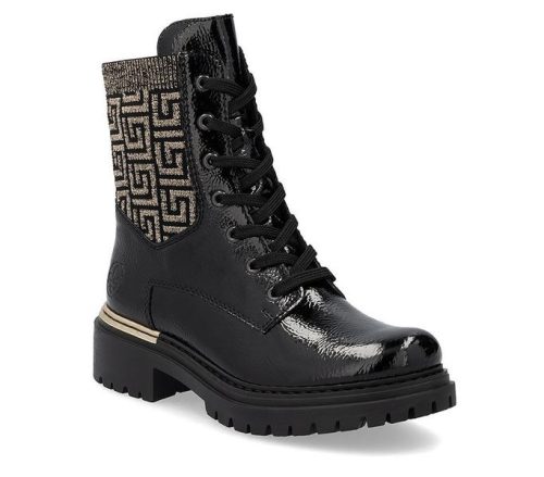 Fekete színű Rieker 72607-00 női bakancs. Felsőrészének az anyaga: műbőr felső