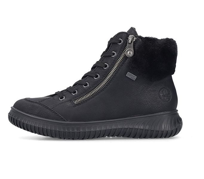 Fekete színű Rieker 74244-00 női bakancs. Felsőrészének az anyaga: műbőr felső