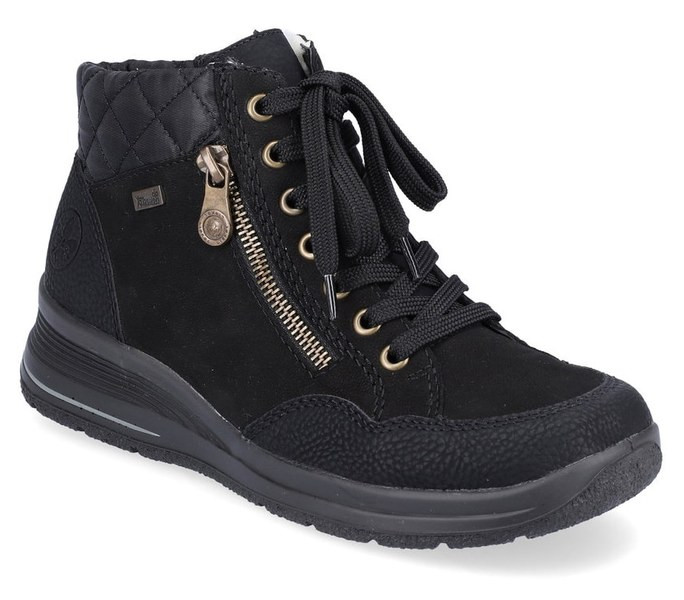 Fekete színű Rieker L7701-00 női bakancs. Felsőrészének az anyaga: Ekológikus bőr/bőr felső