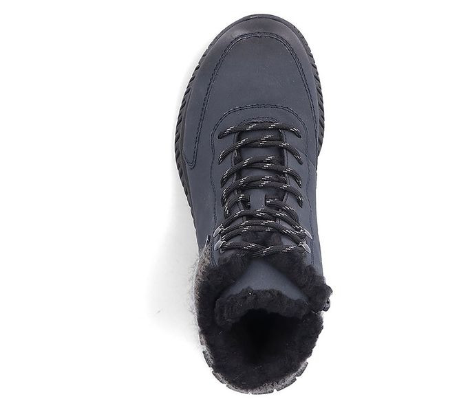 Kék színű Rieker M5310-14 női bakancs. Felsőrészének az anyaga: műbőr felső