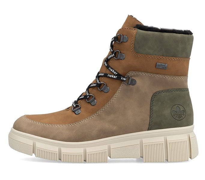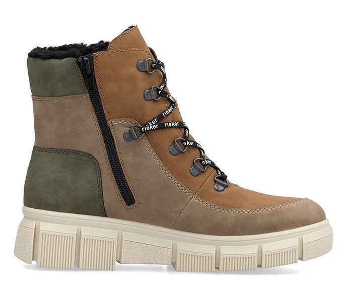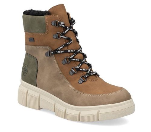Barna színű Rieker X3404-90 női bakancs. Felsőrészének az anyaga: műbőr felső