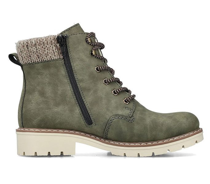 Zöld színű Rieker Y9118-54 női bakancs. Felsőrészének az anyaga: műbőr felső
