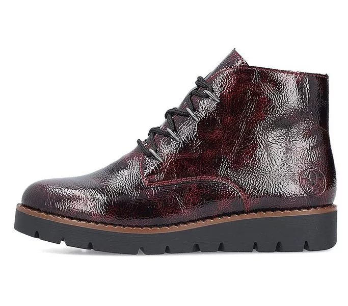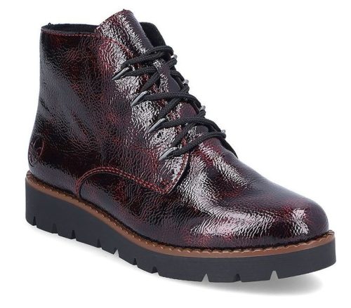 Bordó színű Rieker 44902-35 női bokacsizma. Felsőrészének az anyaga: műbőr felső