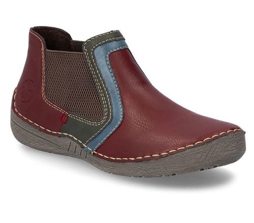 Bordó színű Rieker 52599-35 női bokacsizma. Felsőrészének az anyaga: műbőr felső
