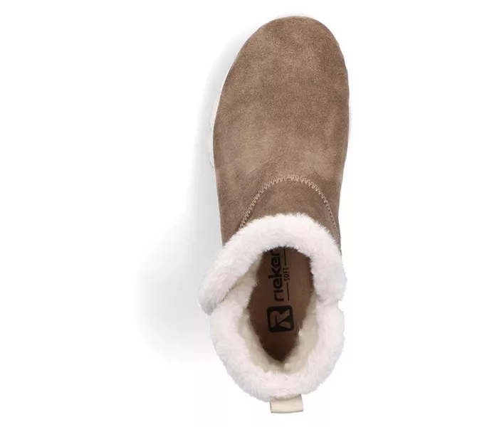 Fekete színű Rieker M6050-64 női bokacsizma. Felsőrészének az anyaga: bőr felső