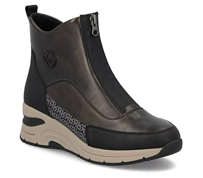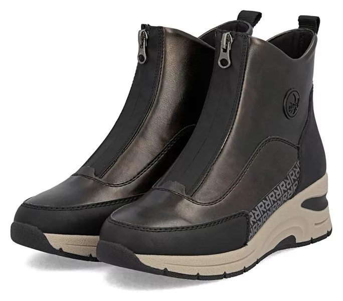 Fekete színű Rieker N9381-60 női bokacsizma. Felsőrészének az anyaga: Ekológikus bőr felső