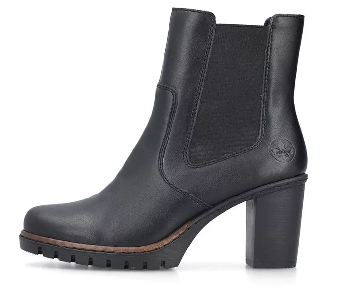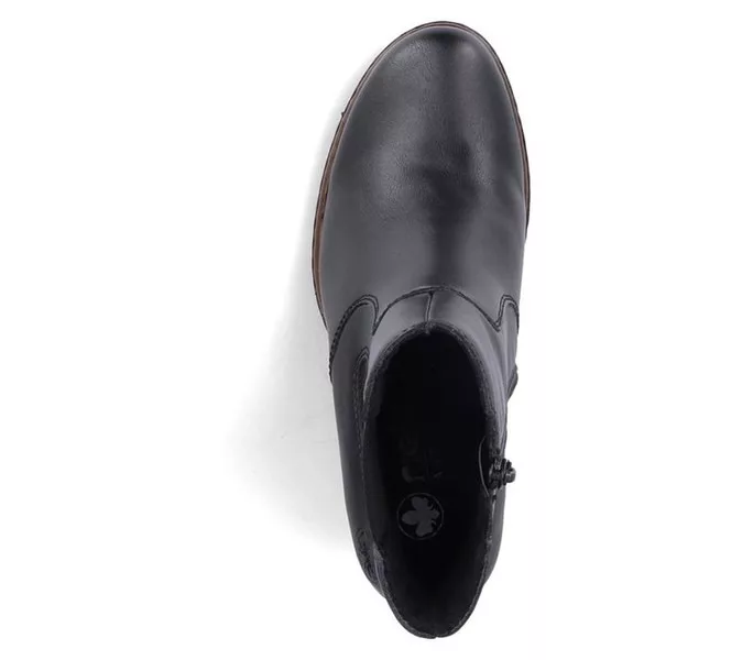 Fekete színű Rieker Y2580-00 női bokacsizma. Felsőrészének az anyaga: Ekológikus bőr felső