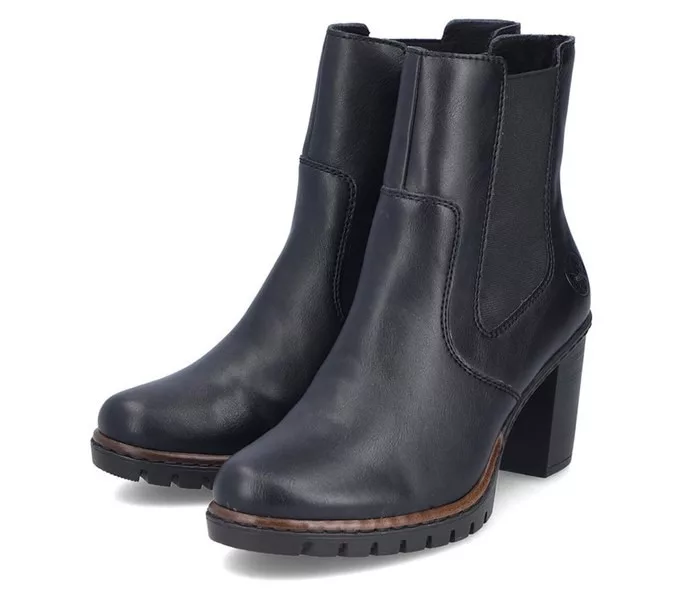 Fekete színű Rieker Y2580-00 női bokacsizma. Felsőrészének az anyaga: Ekológikus bőr felső