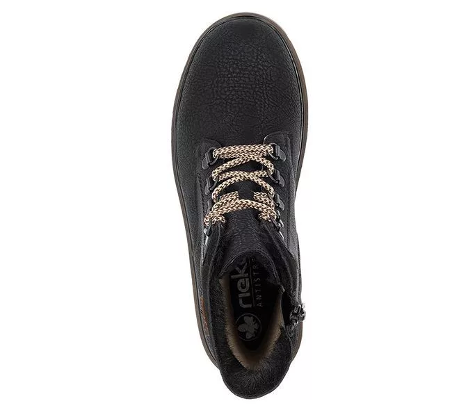 Fekete színű Rieker Y3433-00 női bokacsizma. Felsőrészének az anyaga: műbőr felső