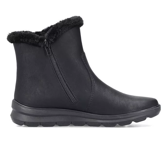 Fekete színű Rieker Z0080-00 női bokacsizma. Felsőrészének az anyaga: műbőr felső
