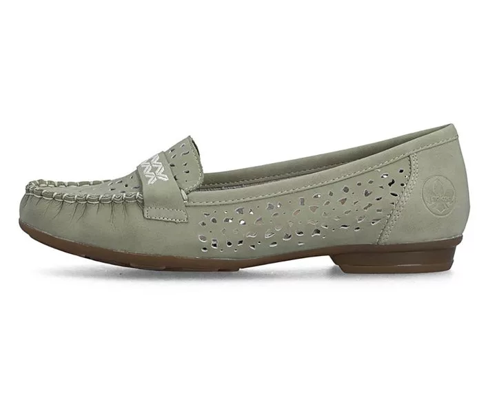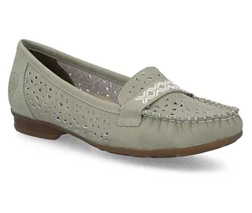 Zöld színű Rieker 40069-52 női cipő. Felsőrészének az anyaga: Bőr/ekológikus bőr felső