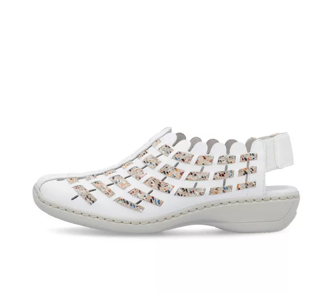Fehér színű Rieker 413V8-80 női cipő. Felsőrészének az anyaga: bőr felsőrész