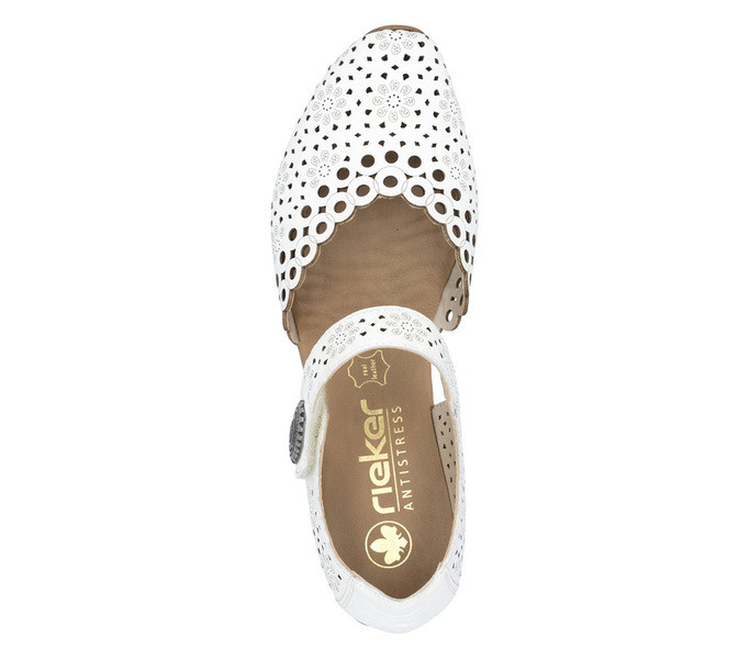 Fehér színű Rieker 43753-80 női cipő. Felsőrészének az anyaga: Felsőrésze: bőr