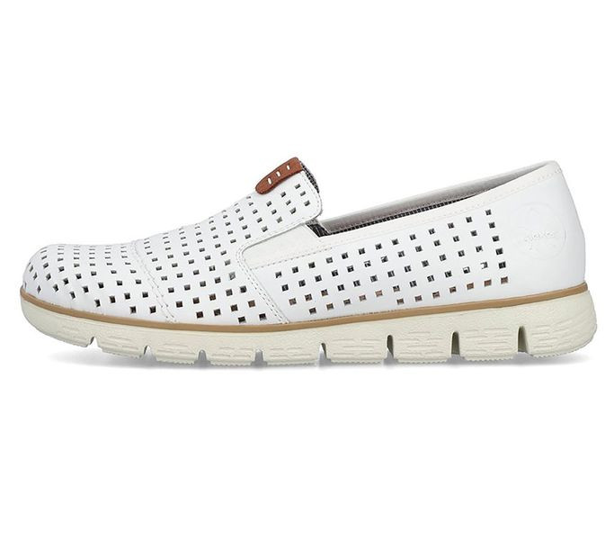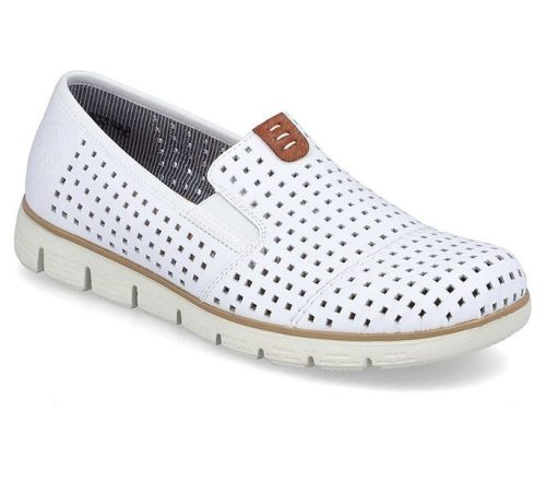 Fehér színű Rieker 44077-80 női cipő. Felsőrészének az anyaga: bőr felső
