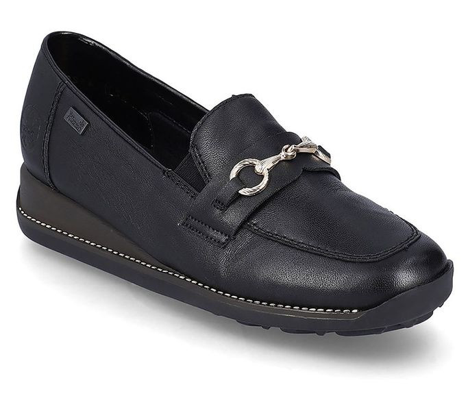 Fekete színű Rieker 44285-00 női cipő. Felsőrészének az anyaga: bőr