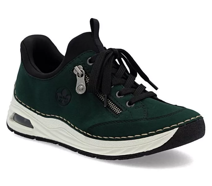 Zöld színű Rieker 44567-54 női cipő. Felsőrészének az anyaga: Ekológikus bőr felső