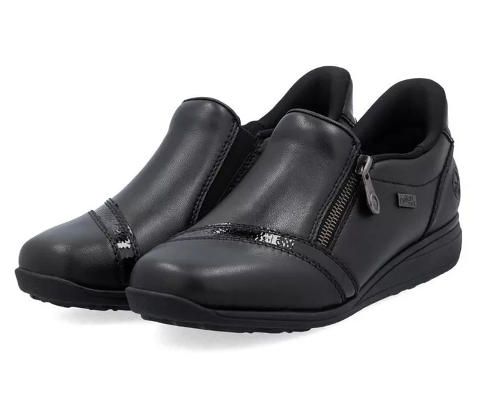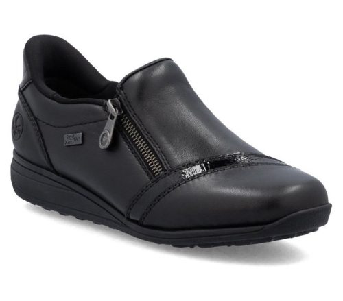 Fekete színű Rieker 47264-00 női cipő. Felsőrészének az anyaga: Ekológikus bőr/bőr felső