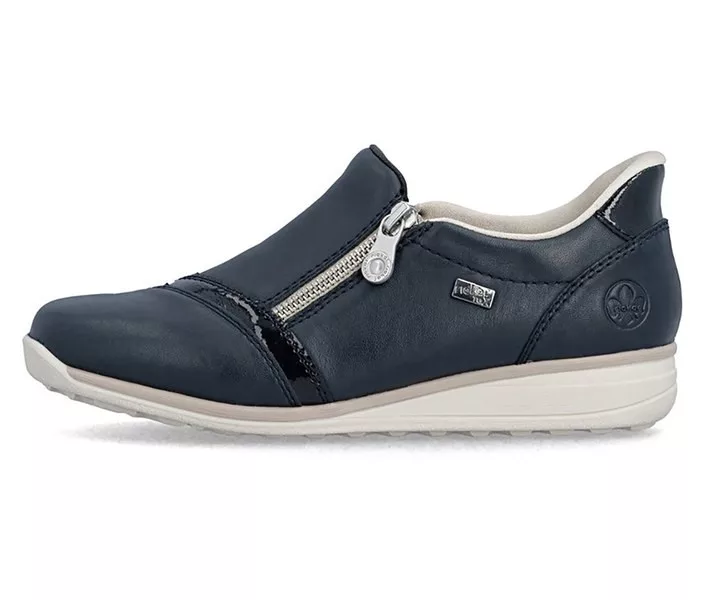Kék színű Rieker 47264-14 női cipő. Felsőrészének az anyaga: Ekológikus bőr/bőr felső
