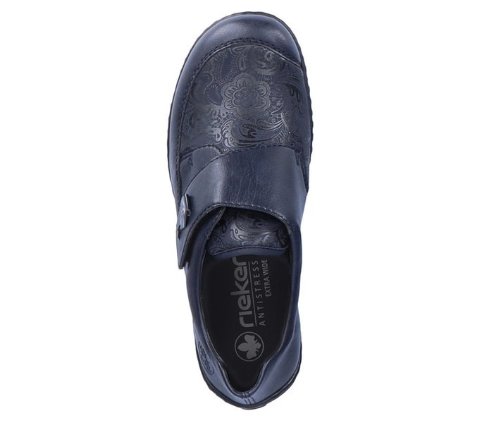 Kék színű Rieker 48951-14 női cipő. Felsőrészének az anyaga: Ekológikus bőr/textil felső