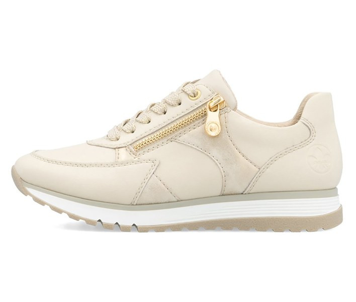 Bézs színű Rieker 49010-60 női cipő. Felsőrészének az anyaga: Bőr felső