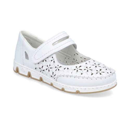 Fehér színű Rieker 49977-80 női cipő. Felsőrészének az anyaga: bőr felsőrész bőr talpbetét