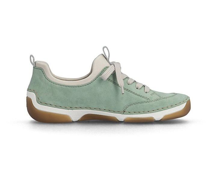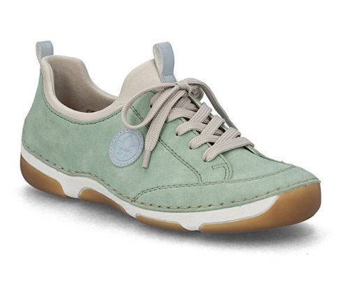 Zöld színű Rieker 55950-52 női cipő. Felsőrészének az anyaga: Ekológikus bőr felső