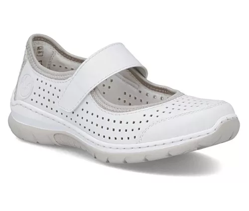 Fehér színű Rieker L32B5-82 női cipő. Felsőrészének az anyaga: Ekológikus bőr/textil felső