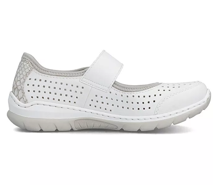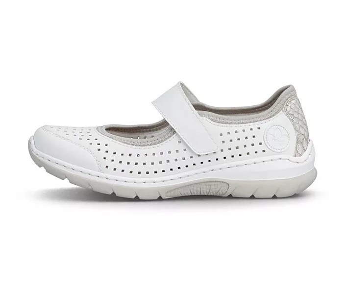 Fehér színű Rieker L32B5-82 női cipő. Felsőrészének az anyaga: Ekológikus bőr/textil felső