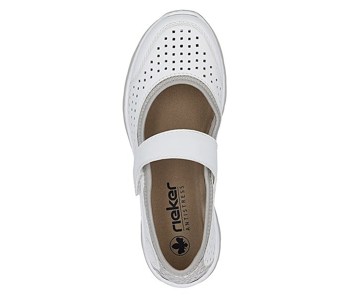 Fehér színű Rieker L32B5-82 női cipő. Felsőrészének az anyaga: Ekológikus bőr/textil felső