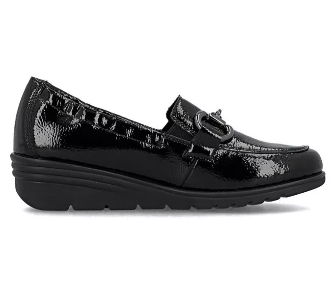 Fekete színű Rieker L5352-00 női cipő. Felsőrészének az anyaga: bőr felső