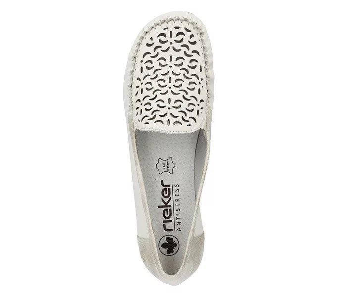 Bézs színű Rieker L6350-60 női cipő. Felsőrészének az anyaga: bőr/ekológikus bőr