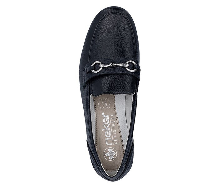 Kék színű Rieker L9355-14 női cipő. Felsőrészének az anyaga: bőr felső