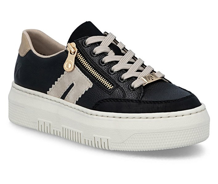 Fekete színű Rieker M1912-00 női cipő. Felsőrészének az anyaga: bőr/ekológikus bőr felső