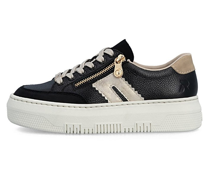 Fekete színű Rieker M1912-00 női cipő. Felsőrészének az anyaga: bőr/ekológikus bőr felső