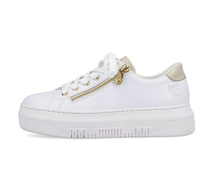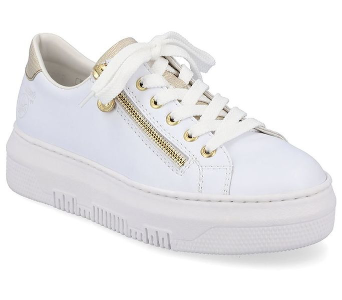 Fehér színű Rieker M1921-80 női cipő. Felsőrészének az anyaga: bőr felső