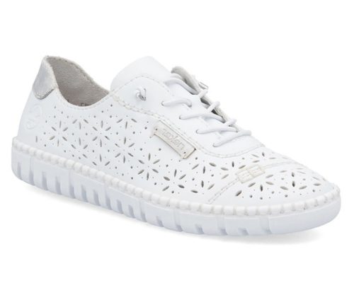 Fehér színű Rieker M2354-80 női cipő. Felsőrészének az anyaga: