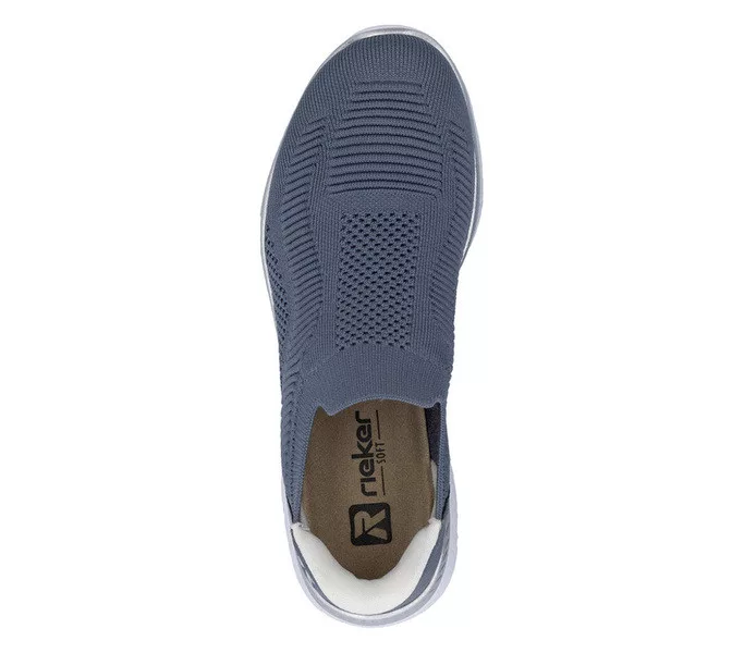 Kék színű Rieker M5072-10 női cipő. Felsőrészének az anyaga: textil talpbetét