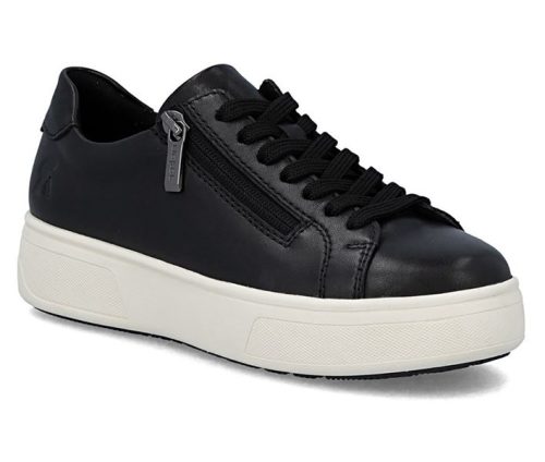Fekete színű Rieker M7701-01 női cipő. Felsőrészének az anyaga: Ekológikus bőr felső
