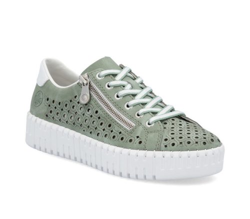 zöld színű Rieker M8300-52 női cipő. Felsőrészének az anyaga: bőr talpbetét