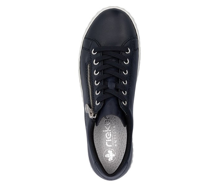 Kék színű Rieker N0900-14 női cipő. Felsőrészének az anyaga: bőr felső